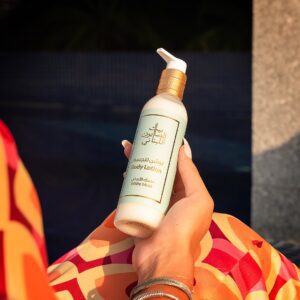 This lotion deeply hydrates and softens the skin with its moisturizing agents, leaving it smooth and supple.