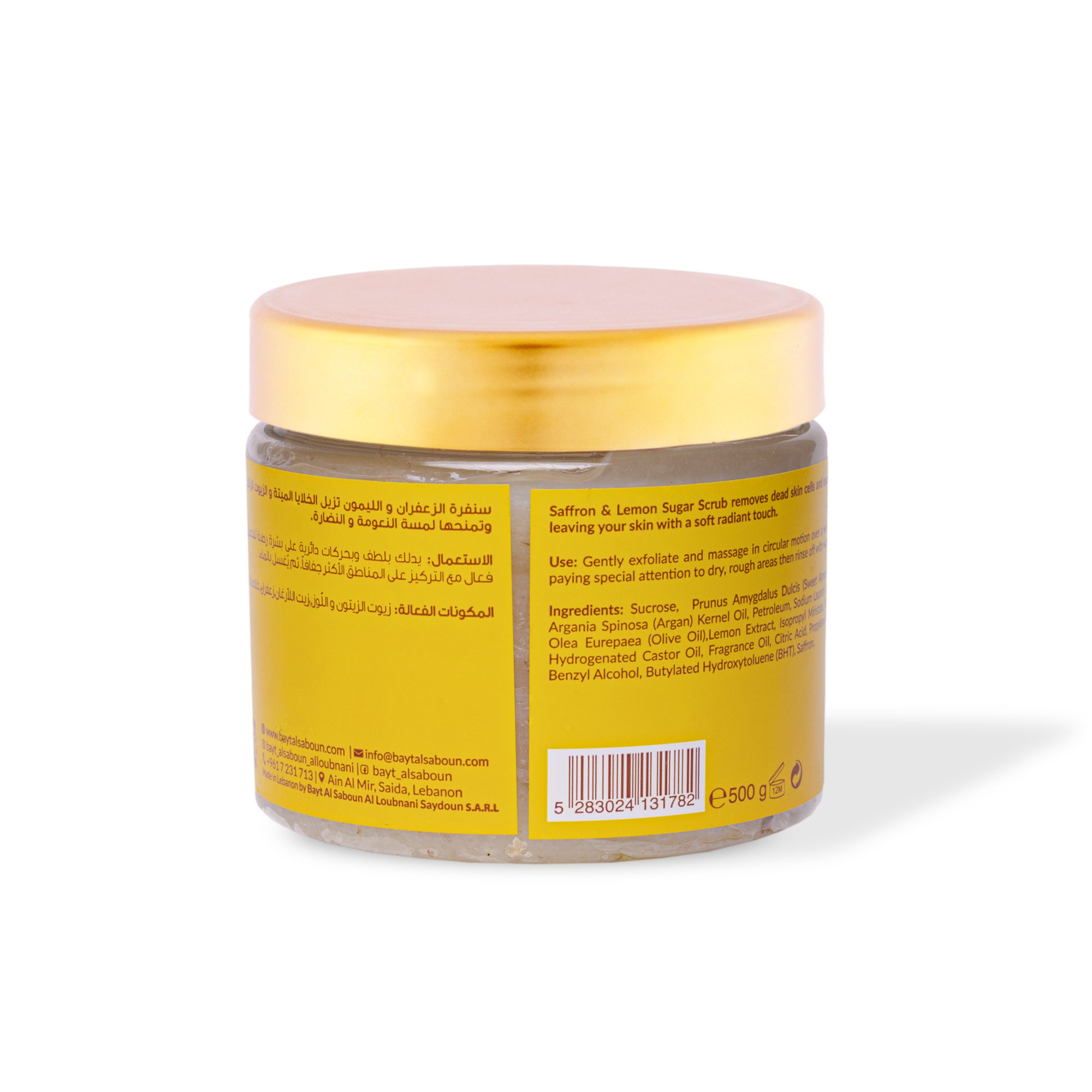 Sucrose, Prunus Amygdalus Dulcis (Sweet Almond Oil), Argania Spinosa (Argan) Kernel Oil, Petroleum, Sodium Laureth Sulfate, Olea Eurepaea (Olive Oil), Lemon Extract, Isopropyl Myristate, PEG-40 Hydrogenated Castor Oil, Fragrance Oil, Citric Acid, Propylene Glycol, Benzyl Alcohol, Butylated Hydroxytoluene (BHT), Saffron.