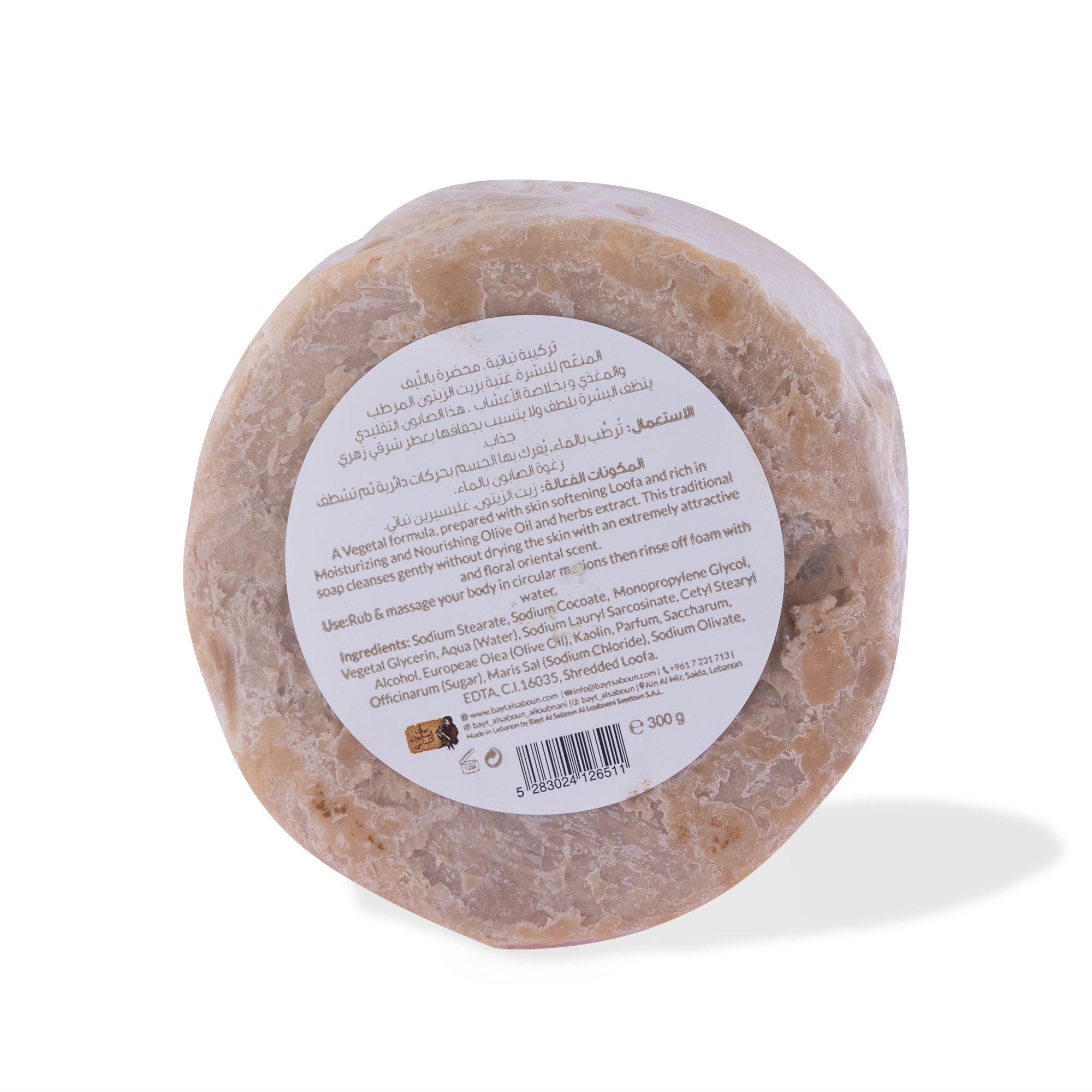 Elevate your bathing experience with the enchanting scent of Maraseem in this luxurious soap, infused with moisturizing olive oil and natural loofah.