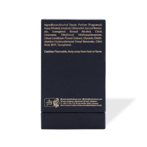 A captivating blend of jasmine, white flowers, amber and white musk, creating a harmonious and enchanting fragrance that leaves a lasting impression.