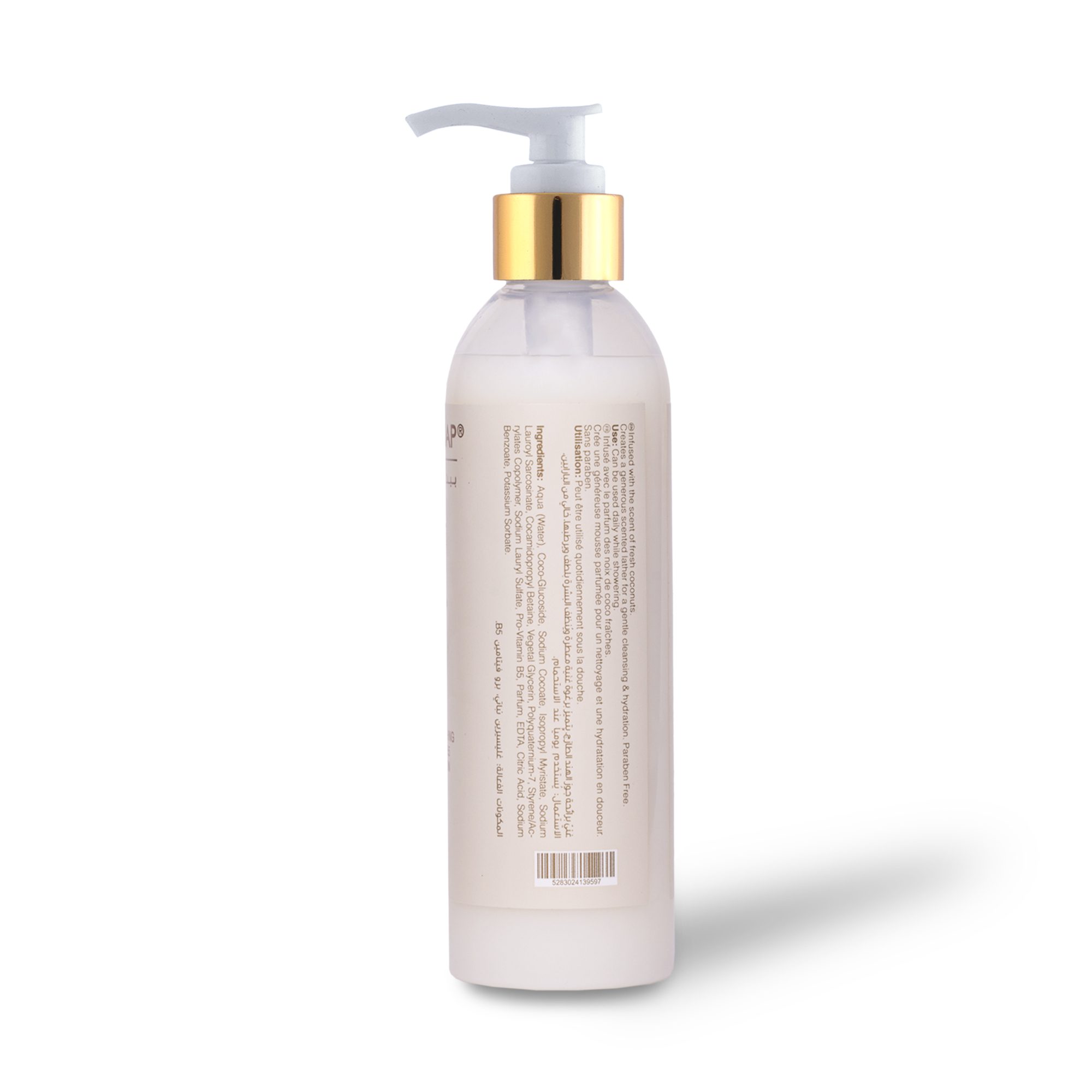 Aqua (Water), Coco-Glucoside, Sodium Cocoate, Isopropyl Myristate, Sodium Lauroyl Sarcosinate, Cocamidopropyl Betaine, Vegetal Glycerin, Polyquaternium-7, Styrene/Acrylates Copolymer, Sodium Lauryl Sulfate, Pro-Vitamin B5, Parfum, EDTA, Citric Acid, Sodium Benzoate, Potassium Sorbate.